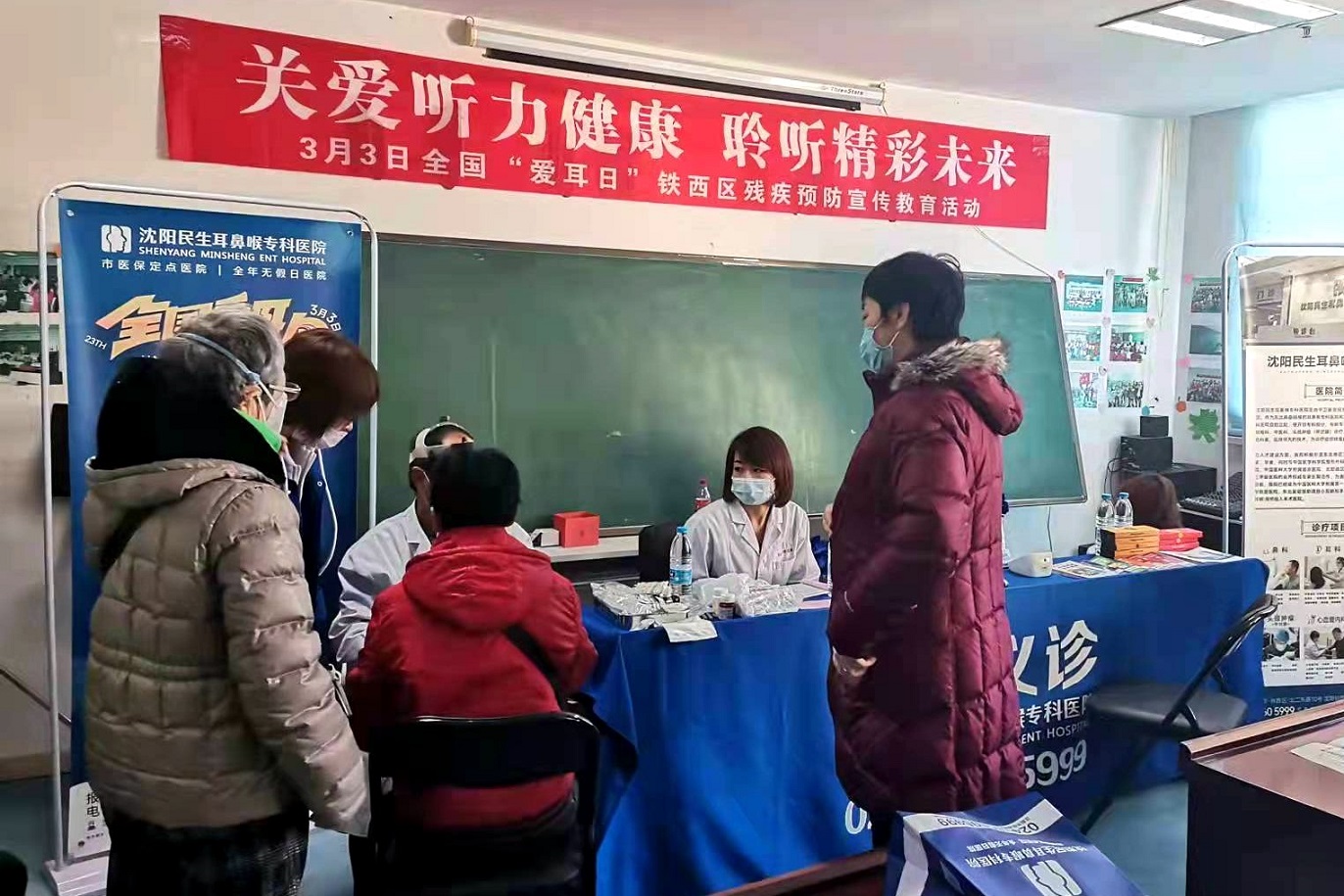 鐵西區殘聯組織開展「關愛聽力健康 聆聽精彩未來」學雷鋒志願服務活動。聯合瀋陽民生耳鼻喉醫院,在殘疾人康復中心為100名各類殘疾人進行「謹慎用耳和聽力保健」愛耳護耳知識普及和耳科義診檢查,醫生志願者們現場為各個街道社區前來參加義診的殘疾人朋友講解「降低聽力損傷」的注意事項和方式方法。