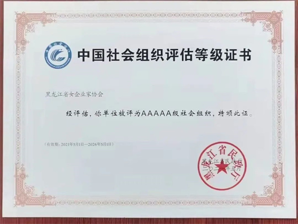 3月4日,黑龍江省民政廳社會組織服務中心主任孫積家為黑龍江省女企業家協會頒授全省性社會組織等級評估中的最高榮譽 「中國社會組織評估等級AAAAA級」牌匾和等級證書。省女企協會長趙曉紅、執行會長仲兆敏領取5A級社會組織牌匾及證書。黑龍江省女企業家協會常務副會長呂晶、孫玉賢,常務副會長兼秘書長趙蘊華,副秘書長翟華敏共同參加相關活動。