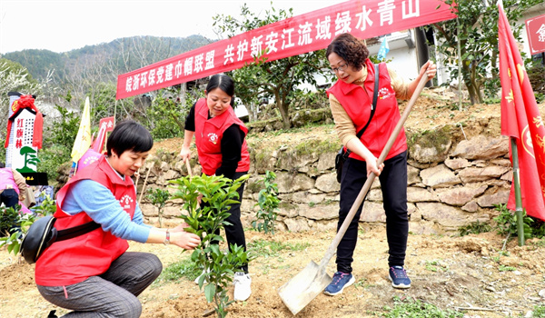 歙縣與淳安縣是省際邊界線,兩縣婦聯貫徹落實習近平總書記生態文明思想,著力推進新安江流域上下游生態環境共同保護,在街口鎮開展新安江流域環保黨建巾幗聯盟,同時舉辦“同植紅旗林,共護母親河”活動。