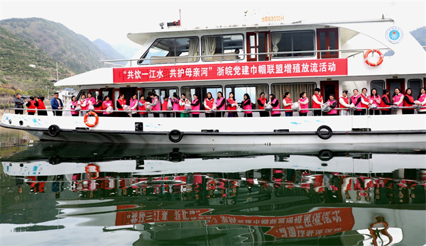 當日,兩縣“三八”紅旗手和巾幗志願者還在街口渡段面船上護河增殖放流“石斑魚”1萬尾、“三角魴”5萬尾;授“皖浙環保黨建巾幗聯盟,共護新安江流域綠水青山”和“巾幗護河志願服務隊”隊旗;“三八”紅旗手代表聯合發出“共飲一江水,共護母親河”倡議。(記者 吳敏 通訊員 吳建平)