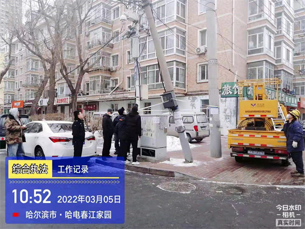 「大慶副路與大慶四道街交叉口有一處電線杆傾斜。線杆上的通訊電纜下垂嚴重,電纜線下垂距地面僅一米高,一旦傾倒將會造成嚴重後果」。近日,哈爾濱市香坊區綜合行政執法局收到安樂街道辦反映的情況後,立即組織人員進行緊急協調處置。3月7日,在安樂街道辦和社區工作人員的配合下,協調具有資質的施工隊伍,將「受傷」電杆拆除,消除安全隱患,為居民出行排除障礙。