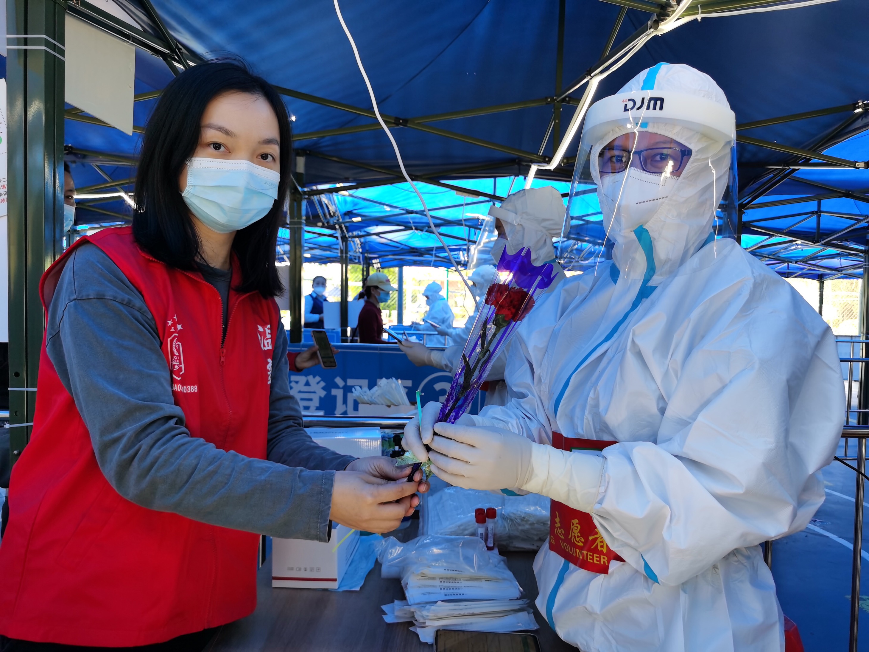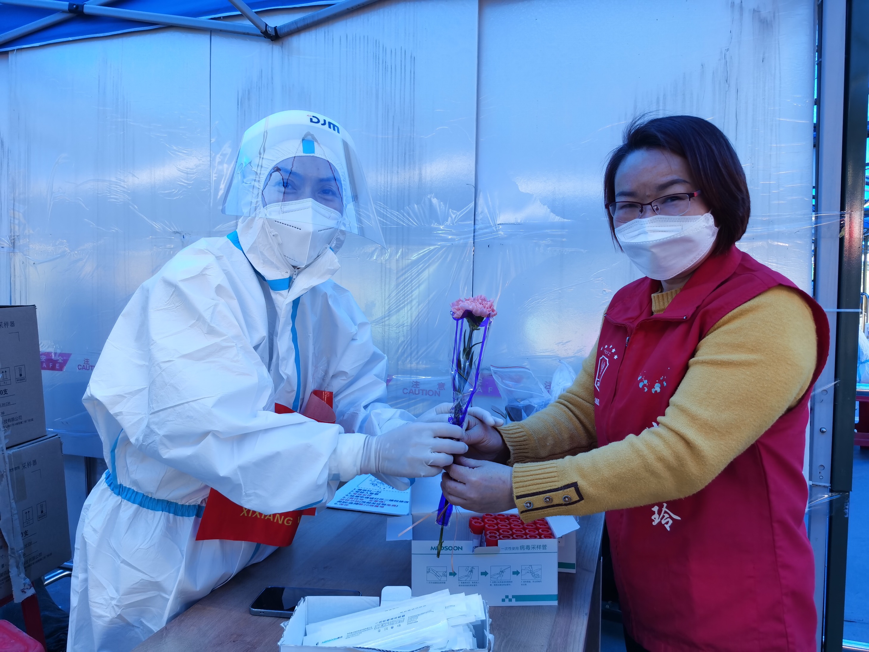 活動中,志願者們還在各自的崗位為群眾服務着,她們有的在核酸檢測現場維持秩序、有的在疫苗接種現場指引群眾進行填表。西鄉志聯婦聯主席寧茂玲、副主席溫翠翠同西鄉志聯的理事們給奮鬥在一線的疫情防控女性志願者們送上鮮花,並向她們在疫情期間所作出的奉獻表達了感謝。通過此次活動,大大鼓舞了疫情防控志願者們的信心,堅定了她們的意志。收到鮮花的志願者表示非常感謝西鄉志聯婦聯的關心,在之後的疫情防控工作中,她們將會更加認真負責,服務好每一位群眾,為西鄉街道疫情防控工作的持續開展奠定志願者力量。(記者 王娜 通訊員 陳歡 溫翠翠)