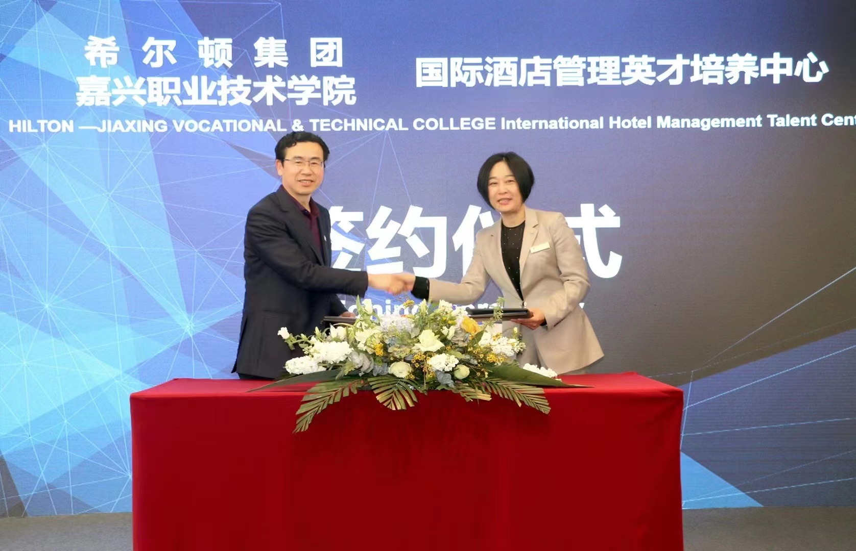 希爾頓集團與嘉職院國際酒店管理英才培養中心正式在嘉興兩家希爾頓酒店成立,該平臺將充分利用希爾頓集團的國際酒店運營管理實踐經驗、人才培養、學生實習與職業發展平臺;充分發揮嘉職院涵蓋現代化旅遊與酒店服務各方面領域專業知識的優勢,構建出一個具有鮮明特色的國際酒店商業管理領導人才培養模式。