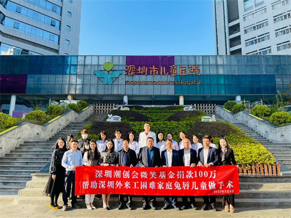 3月9日下午,「微笑娃娃」唇齶裂醫療救助專項啟動儀式在深圳市兒童醫院舉行。深圳潮創會微笑基金向深圳市兒童醫院捐贈100萬元,用於支持在該醫院開展唇齶裂手術治療的困難家庭兒童。