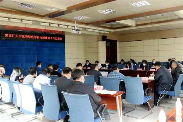 為更好了解學校優勢特色學科2021年內涵建設情況,明確下一階段建設方向,近日,黑龍江大學召開優勢特色學科內涵建設工作匯報會。校長付宏剛、副校長鍾衛東、全校博士學位授權學科所在學院院長、學科帶頭人及相關職能部門負責人參加會議。會議由重點建設與發展工作處處長翟庚主持。