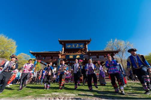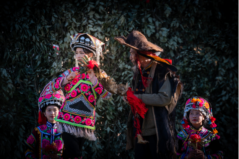 農曆二月初八,在大姚縣曇華鄉千柏林,隨着德高望重的畢摩給曇華新晉的「花仙子」帶上當地象徵「繁榮、昌盛」的馬纓花,祈福人壽年豐,一年一度的「彝族插花節」直播就此拉開序幕。祈福儀式過後,本屆「花仙子」和「百靈鳥」們送上熱情四溢的「攔門酒」,邀四方來客入鄉一同參加歡樂的節慶活動。