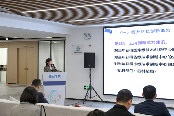 日前,以「聚勢拓新 增取未來」為主題的雲創學院首期「企業資本助力及政策解讀分享會」在雲谷創新園舉辦。安徽省合肥市包河區科技部門負責人開展政策宣貫並現場答疑。極氪汽車、雲璽量子、佐行智能等30餘家高科技企業代表參加。
