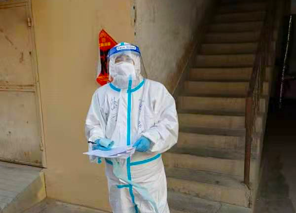 孫松梅接着說,「3月8日到濱河小區入戶做核酸檢測的時候,一個四歲的小男孩,瞪着一雙天真的大眼睛,上前仰頭看我,阿姨你是最偉大的人,我喜歡你,我大笑着趕緊往回退了兩步,`不要靠近阿姨,阿姨身上髒',男孩趕忙跑到沙發上,讓我坐,我告訴他我們不能坐,那時候很想蹲下抱抱孩子,可是我不能,一種無奈和無助就這麼堵在心口,我趕緊問寶貝怕不怕,小男孩怯怯的說不怕,我堅定地告訴他,嗯,不怕!好多人在幫助我們,你只要在家聽話就好,很快就可以和幼兒園的小朋友一起玩了。」
