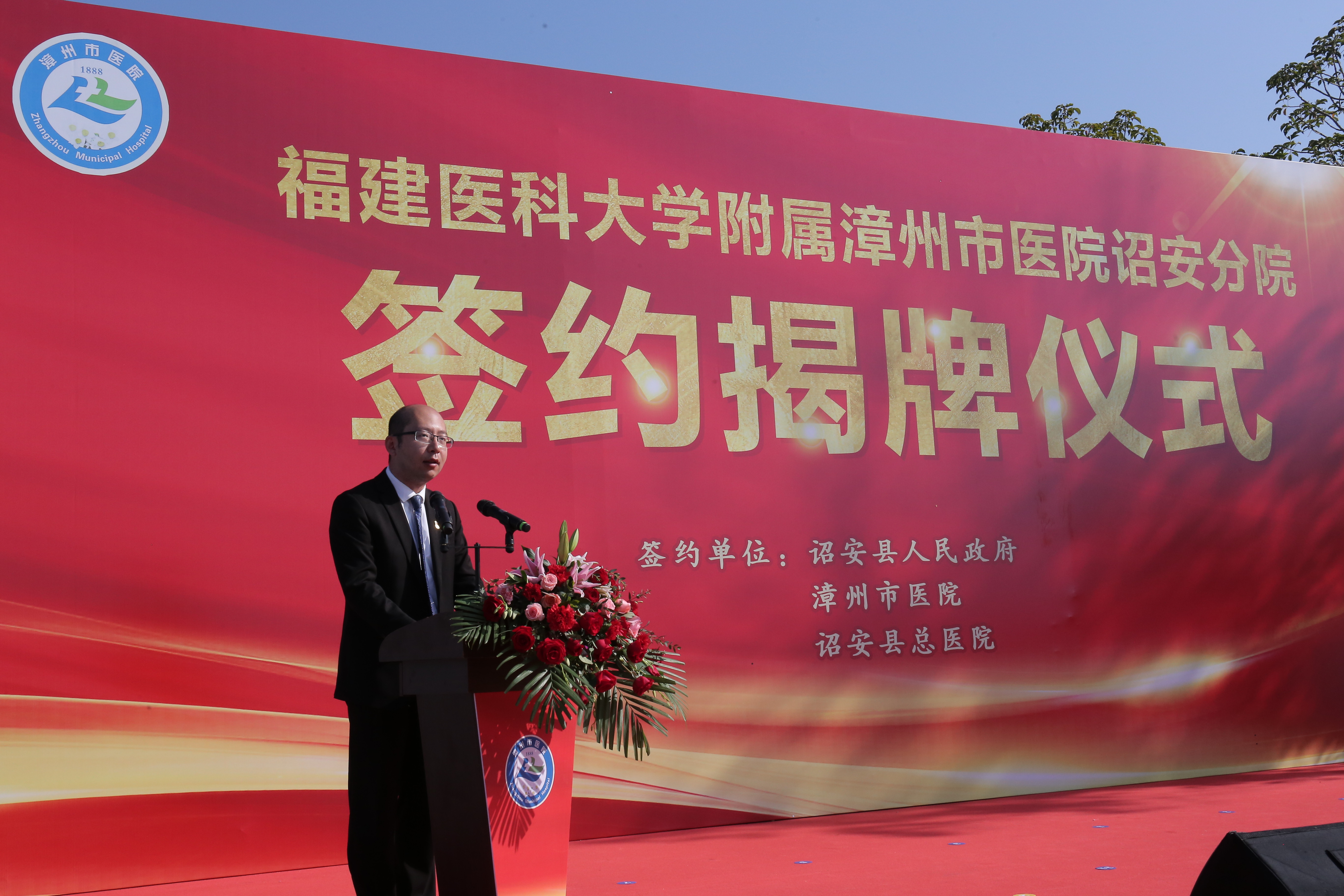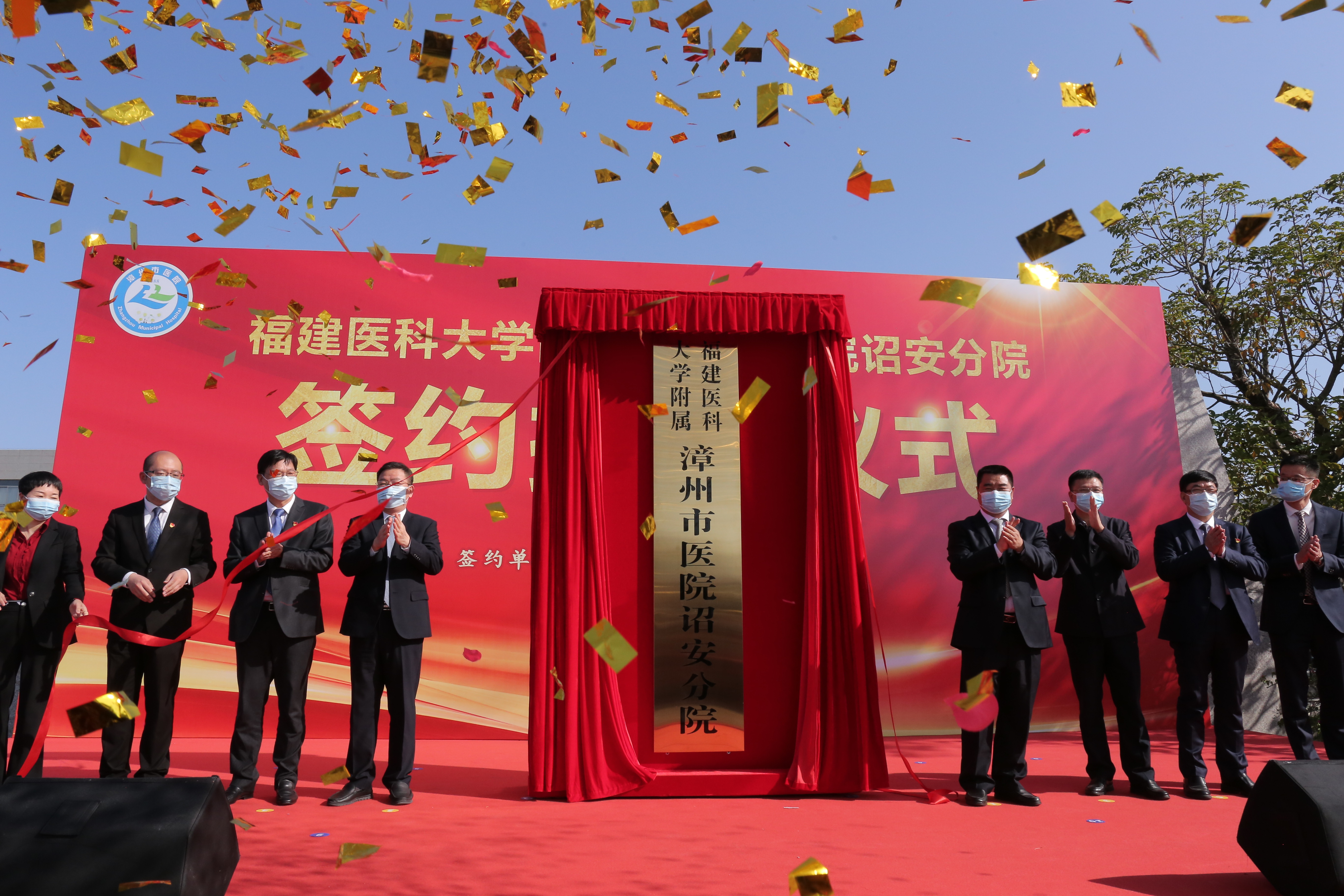 3月11日,福建醫科大學附屬漳州市醫院與詔安縣總醫院醫療業務託管簽約暨揭牌儀式在詔安縣總醫院舉行。詔安縣委書記李亞容,詔安縣委副書記、縣長黃慶華,漳州市衛健委副主任葉阿良,漳州市醫院黨委書記郭永林、院長蔡銘智等領導,及漳州市醫院醫療團隊等相關人員出席活動。
