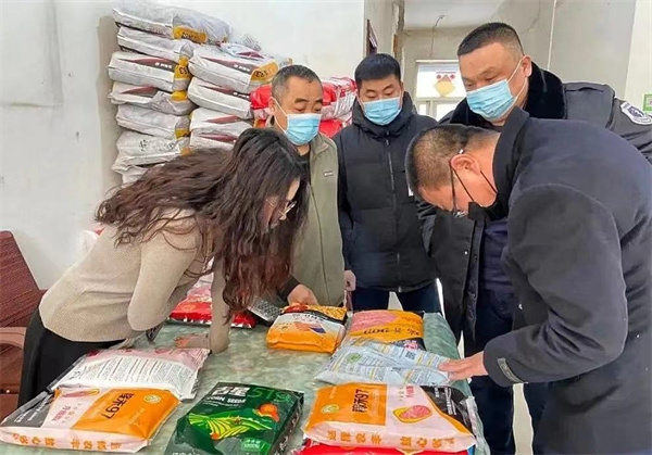 執法人員檢查農資包裝標識是否規範