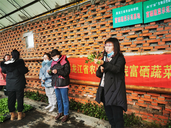 在長產村草莓基地,農業技術推廣中心正在開展富硒草莓技術試驗講解