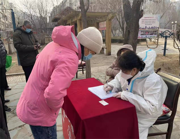 在檢測現場,為確保「不漏一戶、不落一人」,社區工作者挨家挨戶入戶排查,規勸聚集人群,給居家人員送溫暖,為隔離人員購置生活用品,變身為防疫一線的「戰士」,奮力守護居民,傳遞溫暖,為小區居民築牢防疫牆。