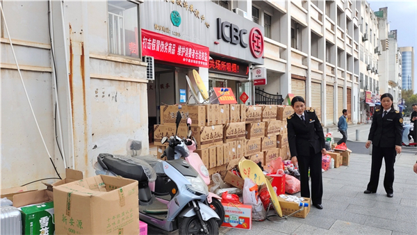 在黃山市休寧縣消費者投訴舉報中心門口,休寧縣市場監督管理局的工作人員將此次需要集中銷毀的罰沒物品堆放在空地上向群眾進行集中展示,據悉,此次展示的罰沒物品包括劣質酒水、食用油等食品及電動自行車、行李箱、電視信號器等商品,其中以侵犯冬奧會吉祥物著作權為例的非法侵權商品成為行政執法查處的重中之重。
