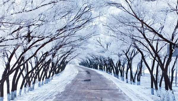 霧凇,俗稱樹掛,是在嚴寒季節里,空氣中過於飽和的水氣遇冷凝華而成,是非常難得的自然奇觀。