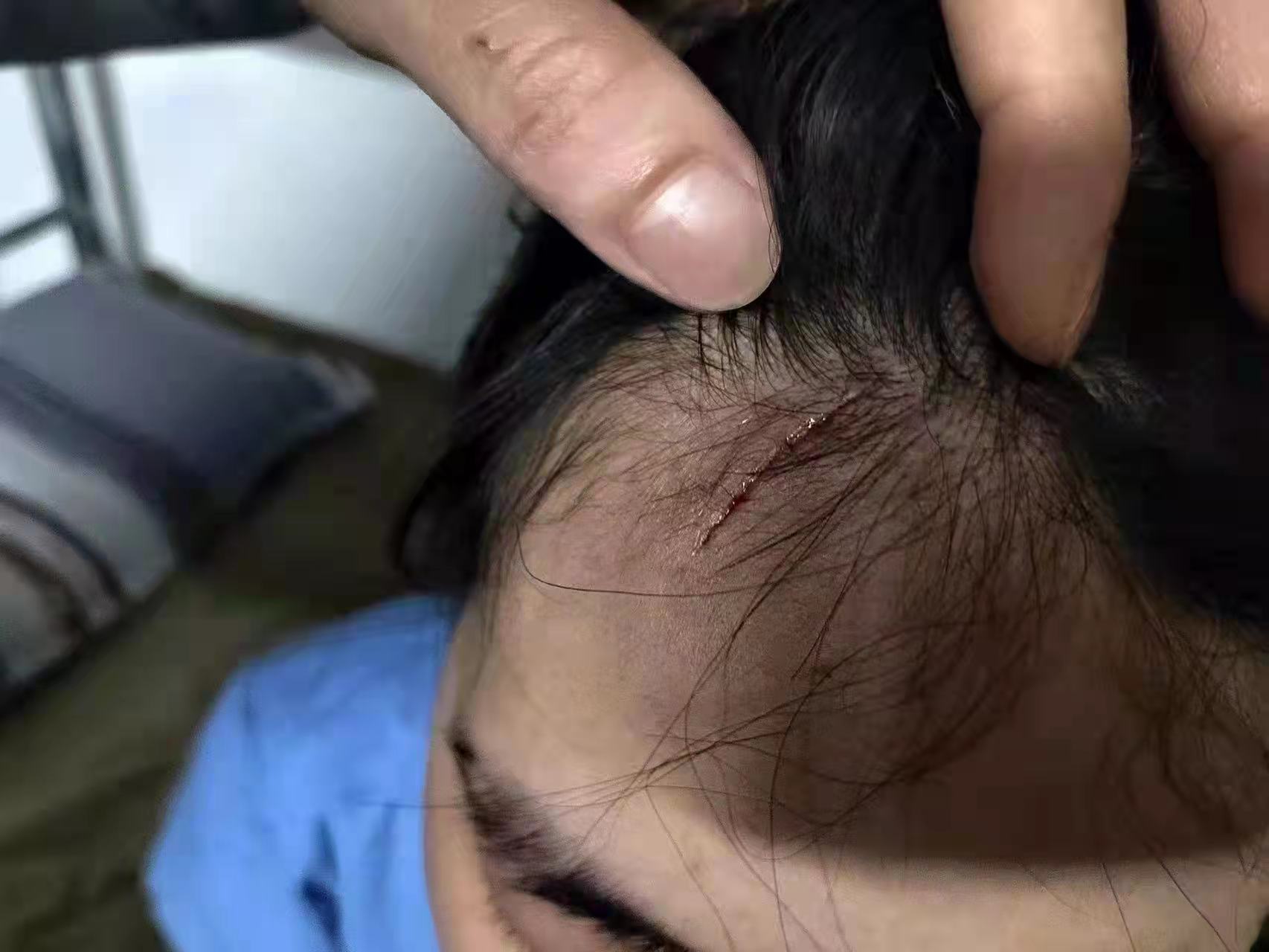 「砰」的一聲,玻璃碎片瞬間散落,文靜的額頭被劃出一道口子,鮮血直流。身邊同事見狀,趕緊上前扶起她,有的馬上脫下身上短袖為她壓住傷口,有的輕聲安撫她,讓她不要害怕。隨後,文靜被送往隆江鎮中心衛生院進行傷口清創縫合,並在岐石鎮衛生院打針治療。