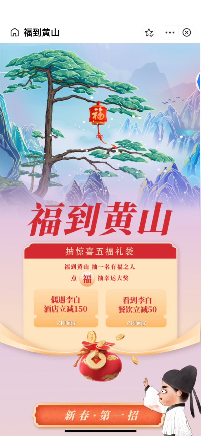 每年一度的集五福活動已經成為新的“年俗”,很多品牌方都表達這是一個巨大的流量池,品牌可以將五福流量引入到自己的私域小程式,享受生態開放帶給商家的私域紅利,那黃山這樣的景區平臺是怎麼玩五福的呢?