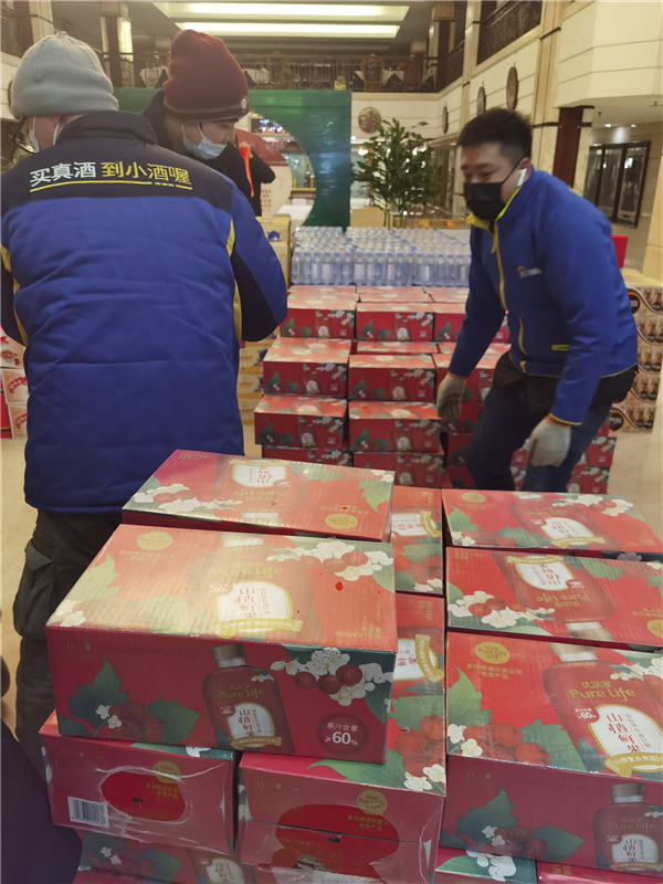 戰疫情,有溫情!連日來,在新一輪疫情形勢嚴峻複雜、疫情風險和防控壓力持續加大的情況下,哈爾濱市疫情防控工作人員日夜值守,奮戰在抗疫一線,社會各界愛心企業也積極行動起來,愛心捐贈支援抗疫。3月16日,哈爾濱小酒喔酒類供應鏈管理有限公司走進道裏區,為抗疫一線的工作者送來價值10萬餘元的300箱礦泉水、200箱進口飲料及其他防疫物資,以實際行動支援道裏區疫情防控工作,共克時艱築牢防線。