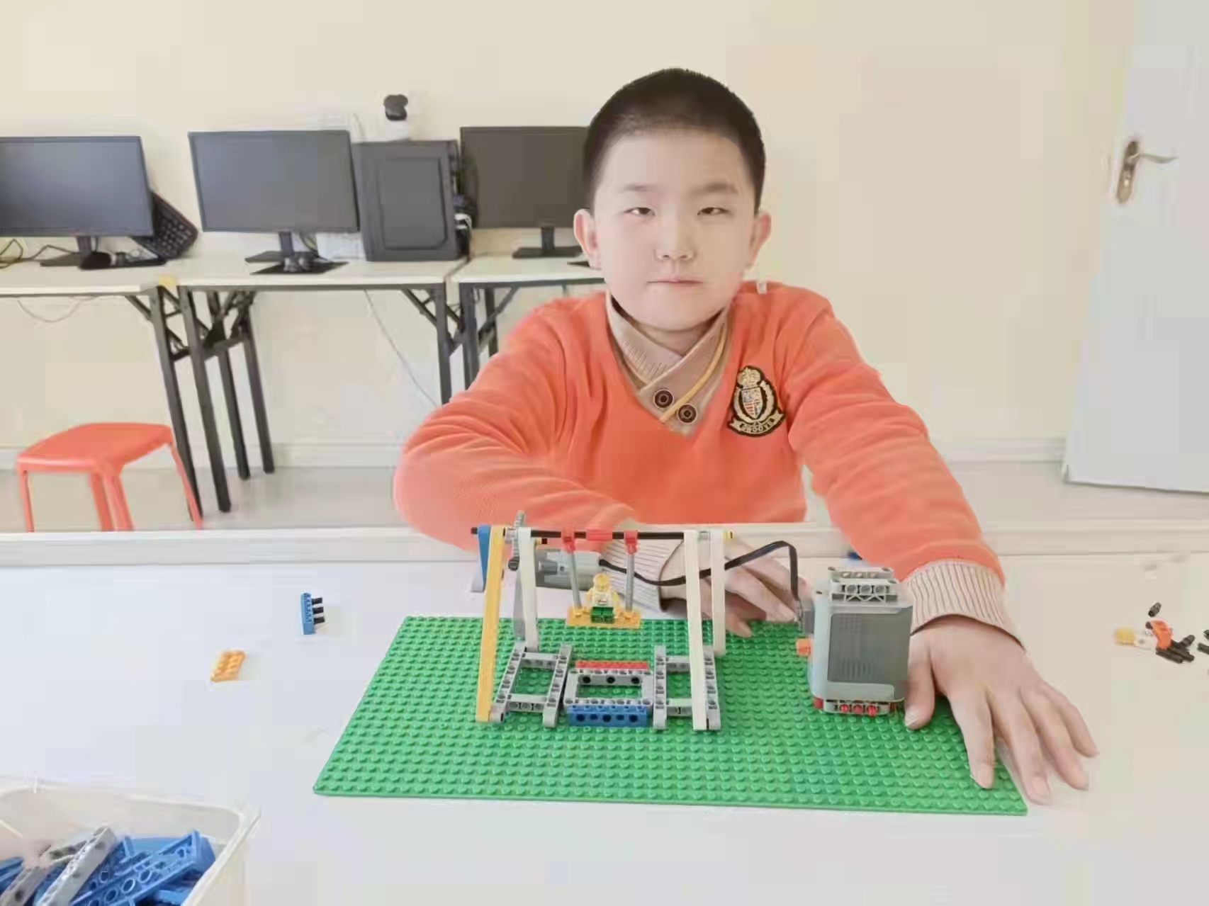「這是我用積木和發電動機齒輪組做成的鞦韆。」克山縣實驗小學二年五班的景彥博小朋友看着自己的新作品小臉上儘是滿足,他在課後興趣班裏,用積木搭建出了一個小型的電動鞦韆。