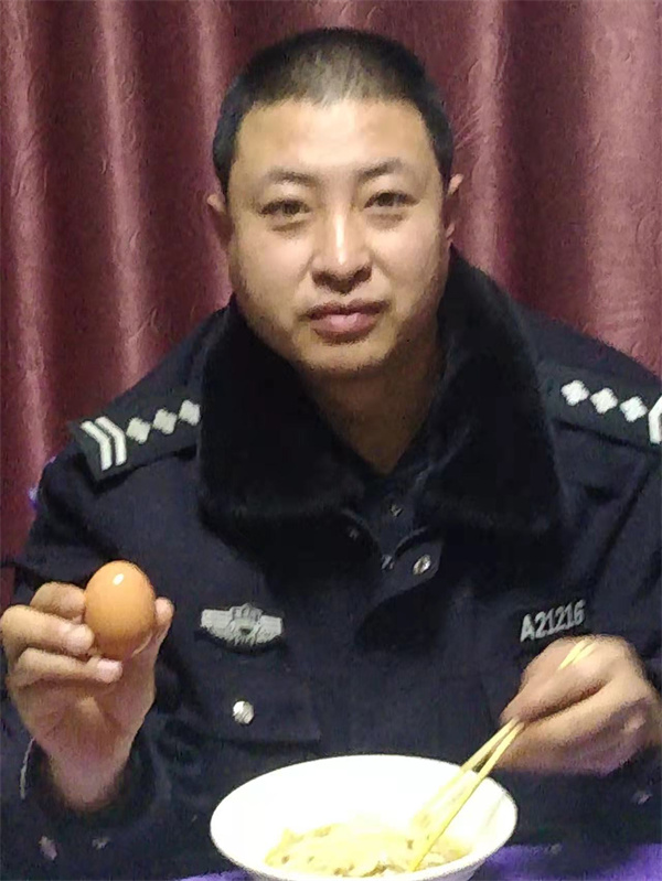 輔警袁小雨,主動請纓馳援五常。3月19日這天是他的生日,執勤卡點是疫情防控的最前線,工作危險,容不得半點馬虎。袁曉雨沒有聲張,只是默默地全身心投入工作中,他不想給領導和同事帶來不必要的麻煩,他也怕因為自己而影響執勤工作。但家裏的一通電話讓同事們得知了這一情況,大家便張羅為他過生日,沒有長壽麵,便泡上一碗方便麵;沒有蛋糕,就用熟雞蛋;沒有生日蠟燭,就用打火機頂替……雖然不能和家人一起慶祝,但在這個寒冷的三月里,他在五常的執勤崗位上度過了人生中最有意義的一個生日,他眼睛濕潤,許下了「疫情儘快被消滅,奮戰在一線的戰友平安!」的美好願望。