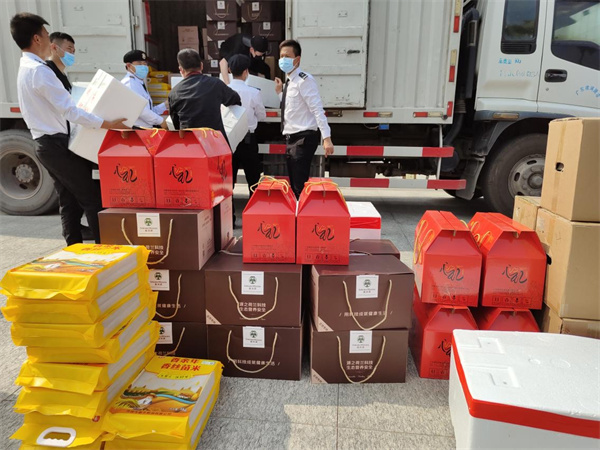 在兩區的共同努力下,源城區經濟社會發展迅速,人民群眾生活日漸提升,並扶持了一批批農業生產企業壯大發展。「禮尚往來思報玖,情深汲引屢拋磚」,為感謝前期大鵬新區愛心企業對源城區的結對幫扶,同時考慮企業閉環管理,食堂食材需求量增大,新區將這批愛心農特產品分發至轄區多家有需求的企業,全力支持他們防疫生產,為仍處在疫情防控關鍵時期的「最美逆行者」送上慰問,為其加油打氣,一份份愛心形成一股股暖流,凝聚出強大的抗疫力量。