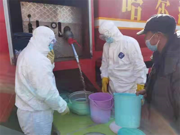 日前,平房區消防救援大隊接到平房區保國街道辦事處求助信息,稱位於保國街道內部分居民小區因管道破裂,導致自來水供給突然中斷,極大影響了居民正常用水。區消防救援大隊立即上報市消防救援支隊指揮中心,並調派友協大街消防站、濱河大道消防站、興建小型消防站、建安小型消防站力量奔赴現場為居民送水,解決居民燃眉之急。