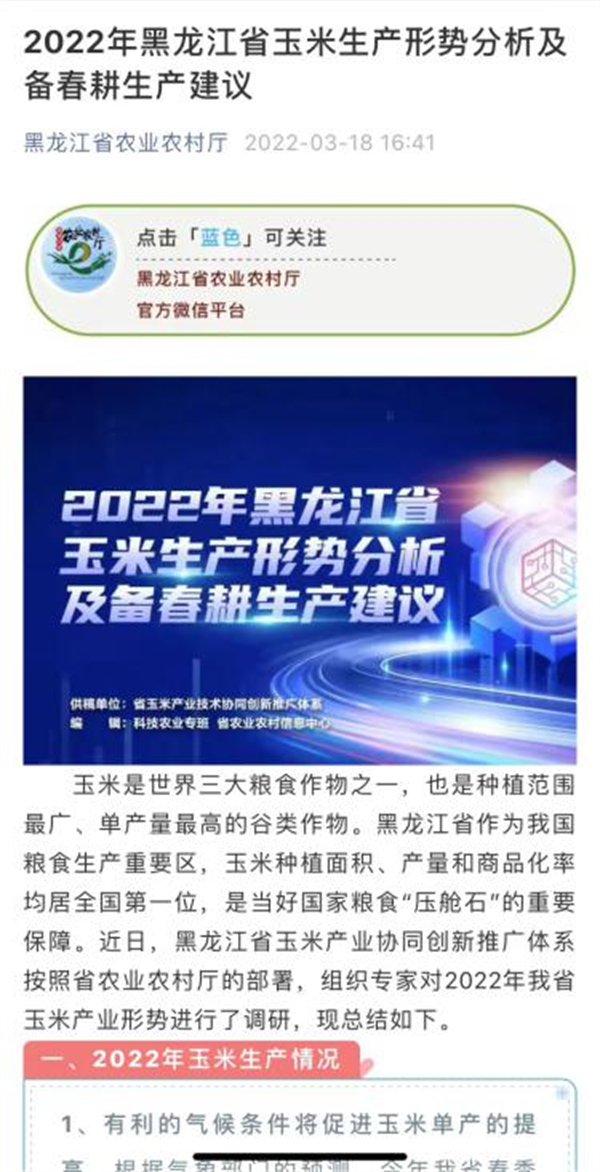 注重發揮各產業技術協同創新推廣體系指導實際農業生產作用,省農業農村廳成立科技農業專班,組織10個省產業技術協同創新推廣體系開展了行業年度生產條件預測分析與技術指導工作,並於3月中旬在省農業農村廳公眾號科技農業專欄發佈水稻、玉米、大豆、蔬菜指導建議,計劃於備春耕期間完成其他6個體系建議發佈,為農民全年種養殖計劃提供研判和指導。