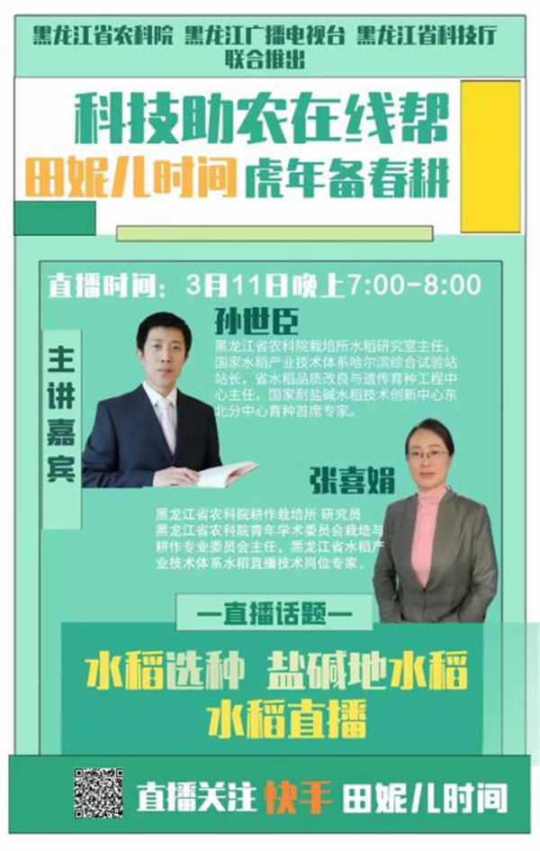 省農科院與省電視台聯合推出「『科技助農在線幫』虎年備春耕」系列助農公益直播。省農科院育種、栽培、植保、畜牧等學科專家做客快手「田妮兒時間」直播間,就今年總體市場趨勢,中央一號文件精神,農業氣象預測,肥料、種子等農資選購,大田作物高產栽培技術等農民普遍關心的問題,與廣大網友在線交流、答疑解惑。截止3月21日,累計觀看量達10.37萬次,獲得點讚23.65萬。