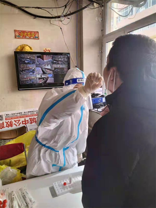 雙城區中醫院護士陳慧梅在核酸檢測點採樣