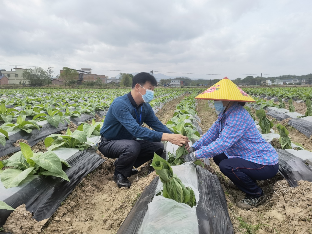 頂圖:南雄市組織技術人員下到田間地頭,指導煙農們做好煙葉田間管理