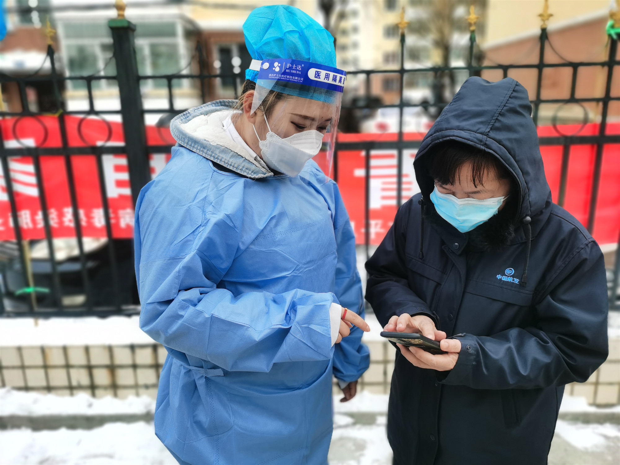 看到社區工作人員沒日沒夜地辛苦工作,轄區居民們都很心疼。有的送上一句暖心的話,有的積極支持,配合工作,還有的主動參戰,就想為防疫盡點力。「因為疫情原因我暫時沒上班,看到群里工作人員不分時段的發佈排查信息,防疫政策,還有風雪中不停穿梭做核酸、送物資的身影,我就很想幫幫她們,哪怕只能分擔一點也好。」家住401樓的趙亞惠略帶哽咽地說。她主動聯繫社區做志願者,並很快投入到了防疫工作中。區域核酸檢測時由於時間緊迫,缺少掃碼人員,導致一定程度檢測進度下降,居民等候時間變長。「我剛學會了系統操作,讓我去吧。外面太冷了,不能讓居民等太久。」趙亞惠主動請纓上一線,顧不上自己衣衫單薄,在並不暖和的屋子裏一坐就是大半天。「您好,健康碼出示一下...大娘,把身份證放這裏...別着急,我幫您手動錄入......」雖然剛剛二十出頭,但趙亞惠卻有着超越年齡的踏實和沉穩,沒有防疫工作經驗,她就認真學用心記,謙和的工作態度不僅得到了居民的認可,也得到了下沉幹部的讚許。