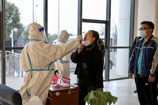 日前,記者在合肥港采訪時见到,內設的核酸檢測點上,3位疾控人員全副武裝;等待核酸檢測的單位職工打開個人安康碼,陸續排起隊……