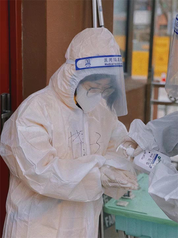 具有中國傳統文化名片的百萬粉絲名模曲迪娜早早來到了森林裏社區,素顏的她快速換上防護服,做好消毒,拿着大喇叭就上崗了。她當志願者的主要任務是動員更多的居民來進行第三輪的核酸檢測。「這裏有一份免費的核酸擺在你面前,請你珍惜」、「風裏雨里,我在檢測點等你」一句句溫情的呼喚喊了一千百遍,居民們聽得清脆,也聽的溫暖,都陸續從樓上走下來排隊做核酸。很快,曲迪娜的嗓子喊啞了,口罩也一次次被打濕,口渴的她為了不上廁所一直不肯喝水,在戶外一站就是一天。