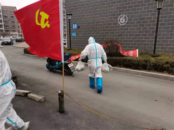 「請黨放心,抗『疫』有我。」他們對着黨旗宣誓。迎着朝霞,懷着希望,按照最嚴格的消殺程序穿好防護服,相互檢查裝備,挨家挨戶了解基本情況和日常需求,有的居民沒有液化氣無法做飯,他們就聯繫氣站送來,消殺、搬運、扛在肩頭,送到門口。有的居民有基礎病歷,需要購買治療腦血栓藥物,他們就聯繫藥房,把藥送到居民手中,確保他們身體健康。有的居民懷孕待產,他們了解情況後立刻打電話記錄詳情,並聯繫醫生對其給予關注,確保孕婦保胎。為了便於溝通,他們每個志願者都會建立居民群,在群里統計購買物資信息,讓居民隔離不隔「心」他們的需求始終都有人傾聽、解決。