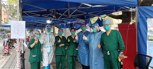 核酸採樣隊在隊長吳蘭苑的帶領下,於3月17日趕赴深圳市南山區,18日便帶着僕僕風塵來到南頭蓮城社區,分別進駐15個核酸採樣點,與華中科技大學協和深圳醫院的醫護人員並肩工作,每天工作時間長達14個小時。