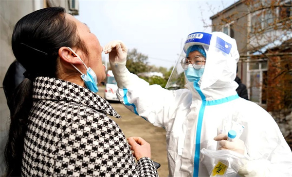 周媛媛今年25歲,2019年入黨的她一直用實際行動踐行着一名共產黨員的職責。從2020年的大年初一至今,她在做好日常婦保工作的同時,還積極參與了登記摸排、疫苗接種、上門採樣檢測等工作。「雖然很累,但是作為一個黨員,很自豪參與這項工作,我們一定築牢疫情防控的『最後一米』。」周媛媛説。