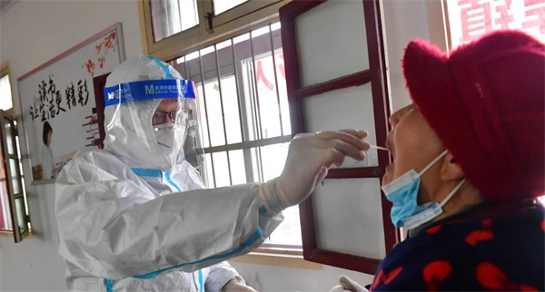 周媛媛告訴我們,進行採樣檢測工作需要穿密不通風的隔離服,經常累到汗流浹背,高峯時一天要採樣100多人,雖然很辛苦,但自己身為一名黨員,必須要在關鍵時刻頂上去。