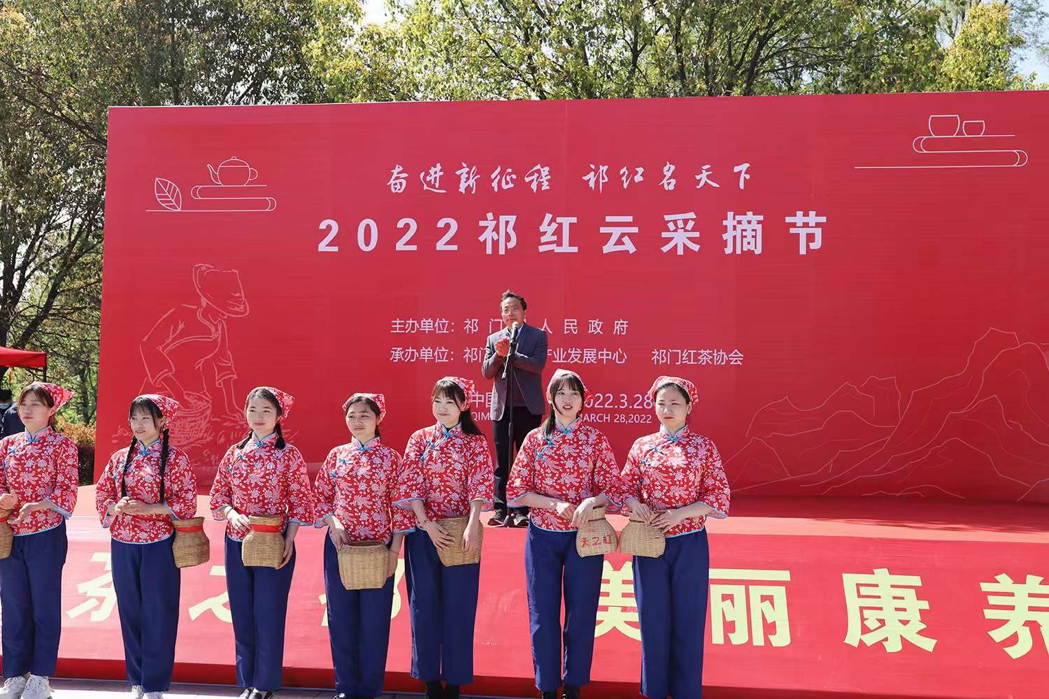 “以芽葉之春鮮,傳承歷史之滄桑;以芽葉之輕盈,托負民生之重任。”3月28日,2022年祁門紅茶正式迎來開園採摘。當日,由祁門縣人民政府舉辦的2022年祁門紅茶雲採摘節在安徽黃山市祁門縣茶山公園啟幕。活動以線下和線上雲直播相結合的方式進行,祁門縣政協主席姚曉俊宣佈2022年祁門紅茶開園採摘,縣委副書記曹宇致辭。