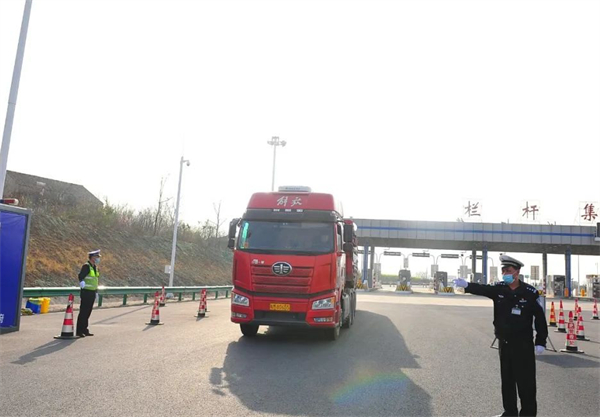 3月19日,在安徽省巢湖市欄杆集高速收費道口,一位民警正指揮車輛有序停好,提醒駕駛人戴好口罩,詢問他們從哪裏來,經過哪裏,然後引導他們到相關區域掃碼、測溫、登記。他就是安徽省巢湖市公安局交警大隊車管所民警錢德山同志。