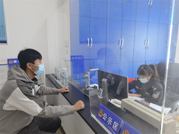 早上8:40,周家派出所戶籍警察正在為群眾辦理戶籍業務,解答政策。