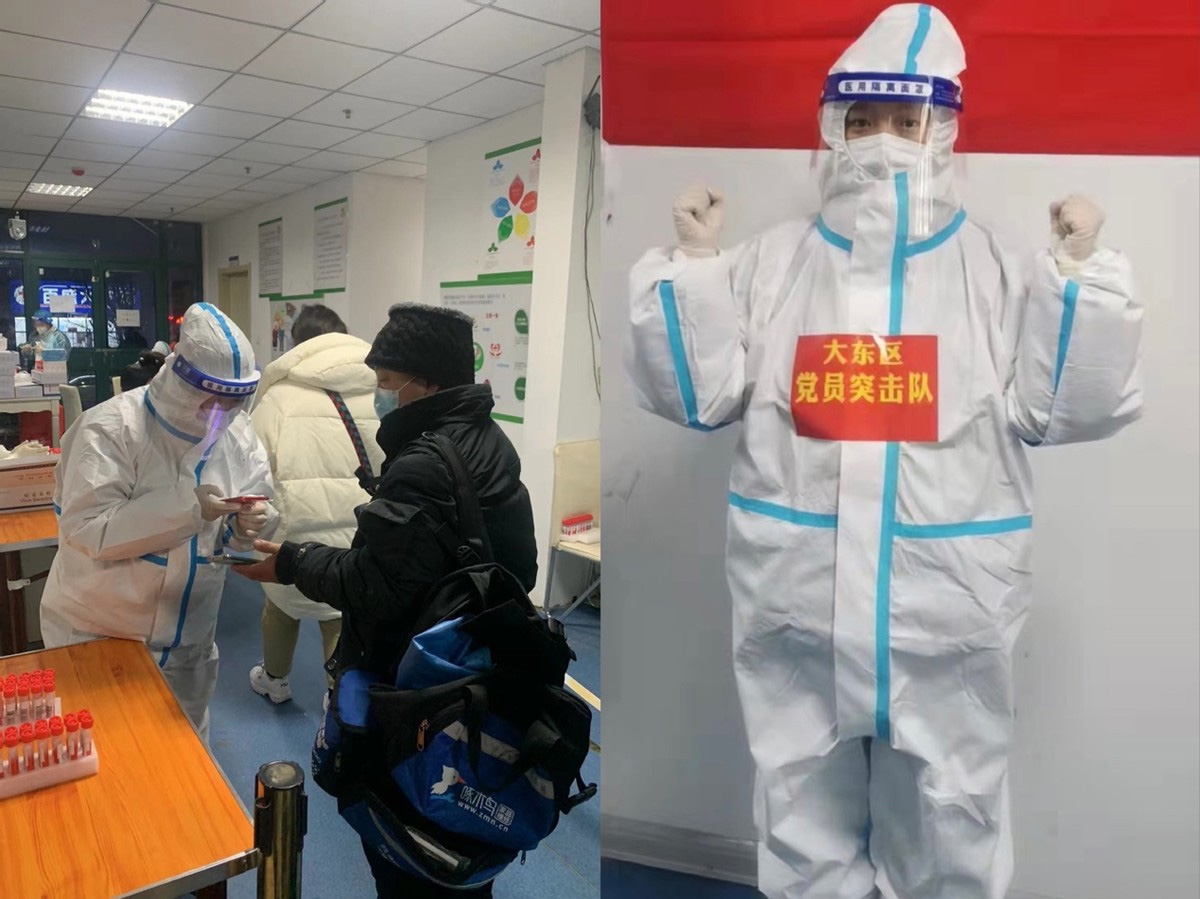 戰場逆行的防護白。朋友圈寫下「聽黨召喚,義無反顧,最美好的祝願就是希望大家都平安」。作為2020年第一批參與入境人員隔離酒店志願服務工作的志願者,青年黨員喬森再次穿上防護服,馬不停蹄從社區核酸檢測點崗位奔赴隔離酒店。身在疫情嚴峻的大東區,得知社區工作人員嚴重缺乏的該局青年黨員馬明佳,毅然將不滿兩周歲的孩子留給家中老人,身穿防護服第一時間投入到社區核酸檢測工作中。退伍不褪色,軍轉幹部蘇安家克服所在社區缺少防疫物資的實際困難,自行購買防護服、防護面罩等裝備,深夜依然堅守在防疫崗位。