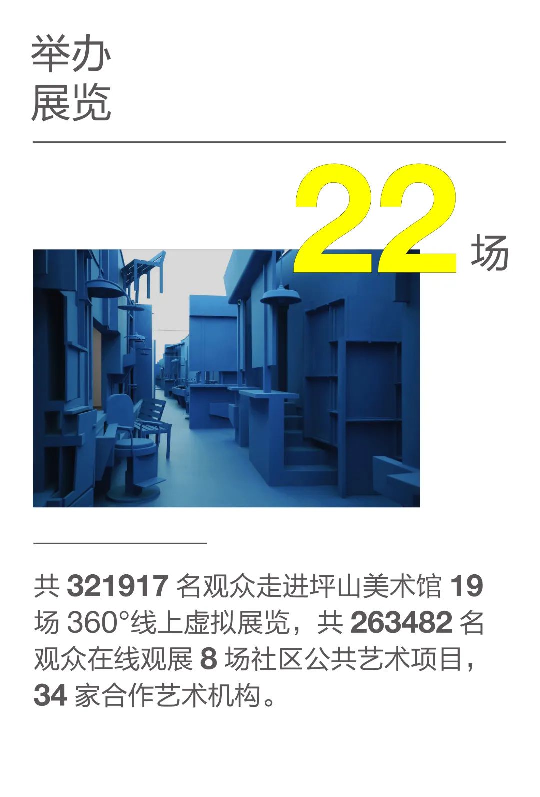 「新生與共振」既是坪山美術館三周年慶的主題詞,也是對於機構未來的冀望。在坪山美術館三周歲生日之際,將通過一串串數字細數這三年流淌的時光。