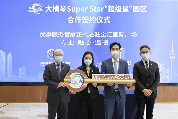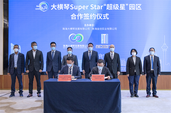 3月30日,珠海大橫琴發展有限公司(下稱「大橫琴發展公司」)與珠海金創實業有限公司(下稱「金創實業公司」)在橫琴國際商務中心4樓舉行合作簽約儀式,金匯國際廣場正式成為大橫琴Super Star「超級星」園區第11顆新「星」。雙方將在樓宇招商和產業服務等方面開展深入合作,引項目、聚人才,全力打造超一流產業園區,為橫琴粵澳深度合作區(下稱「合作區」)產業導入和培育提供「星」載體。