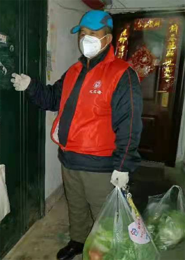 「大爺打擾了,我是社區的工作人員,來給您送愛心企業捐贈的『暖鄰蔬菜包』,為了保證這些蔬菜的新鮮,所以連夜給您送來了,快放冰箱裏。」志願者小李說。