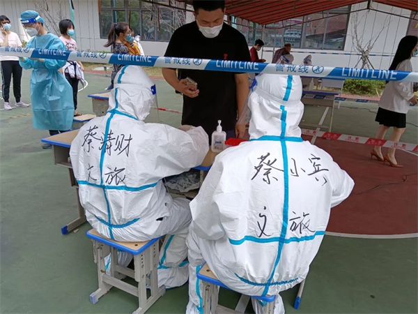 泉州文旅集團的志願者在協助群眾進行核酸採集。泉州文旅集團供圖