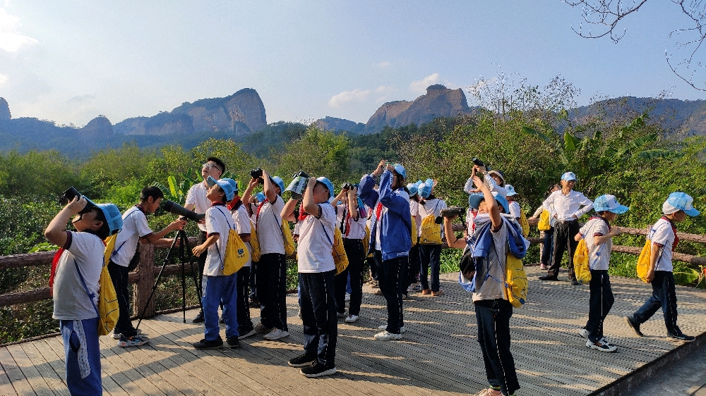 學生在丹霞山進行觀鳥活動 梁惠芬攝