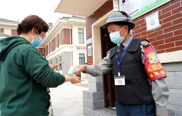 據了解,疫情發生以來,按照上級疫情防控工作部署,保安隊員們從嚴從細抓落實,嚴格執行校園准封閉式防控要求,嚴守大門關口,依法依規開展大門管控、「兩碼」核驗和體溫檢測工作,做到逢車必查、逢人必檢,嚴禁外來人員和車輛進入校園,堅決阻斷潛在傳染源,用自己的辛苦保障了校園的安全穩定。