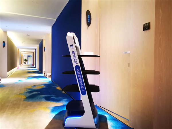 在隔離酒店,酒店客人每天的三餐、水果、飲料、快遞以及生活用品等都需要配送,不僅耗費大量人力,而且有發生職業暴露的風險,給防疫帶來不利影響。在深圳各隔離酒店、醫院,來自普渡科技的配送機械人「歡樂送」解決了這些問題。