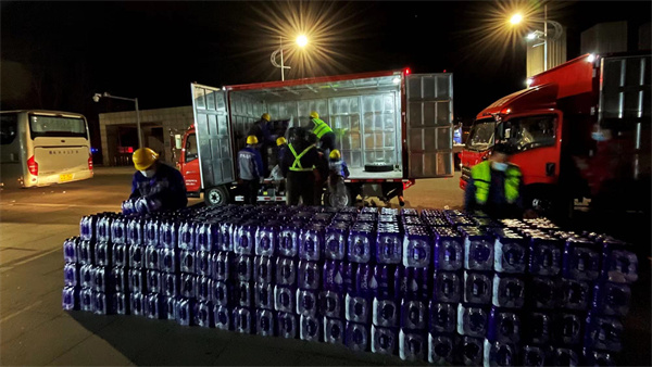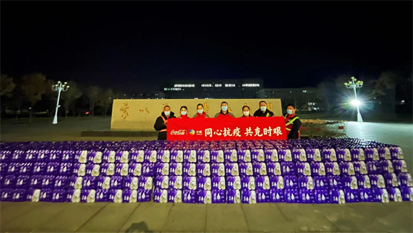 從黃昏到日暮,中糧可口可樂黑龍江公司快速動作,管理團隊及黨員幹部第一時間行動起來,加入到物資準備中並連夜將1萬瓶飲用水送至學校,以實際行動助力學校疫情防控工作,踐行企業的社會責任及擔當奉獻精神。