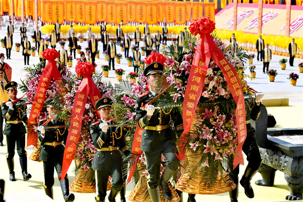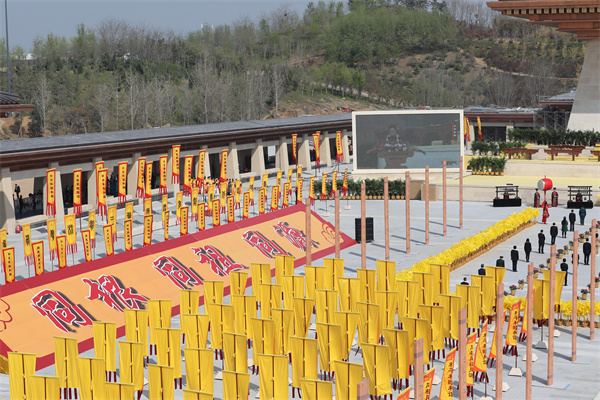大典共有盛世禮炮、敬獻花籃、淨手上香、行施拜禮、恭讀拜文、高唱頌歌、樂舞敬拜、祈福中華、天地人和等九項儀程。九項儀程前,始祖軒轅黃帝塑像落成揭幕。