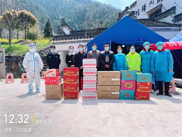 設在皖浙交界的三陽鎮昱嶺關健康服務點,是安徽南大門的第一道防線,每天從浙入皖的車輛人員不少。檢測防控任務繁重。姚春福夫婦捐贈的物質除醫用外科口罩,酒精消毒液外,考慮值班堅守人員的辛苦,還帶上飲用純淨水、桂圓蓮子八寶粥、紅燒牛肉麵和蘋果,以實際行動為防疫工作盡心出力。(記者 吳敏 通訊員 汪政宣)